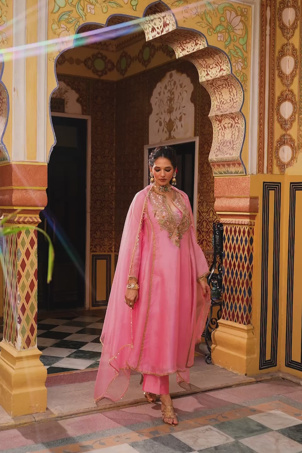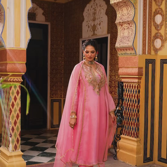 Ahista Pink Pakhi Yoke Pheran Long Kurta Set
