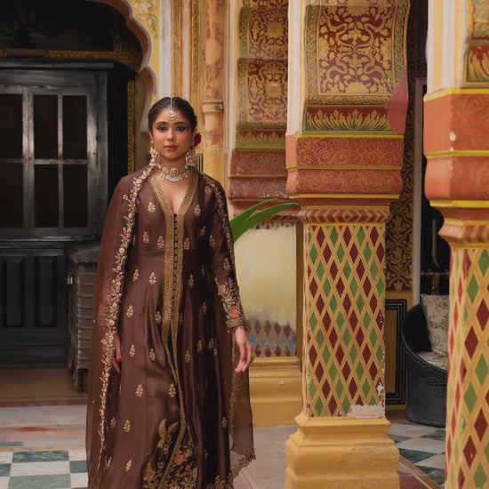 Ahista Brown Jacket Anarkali Set