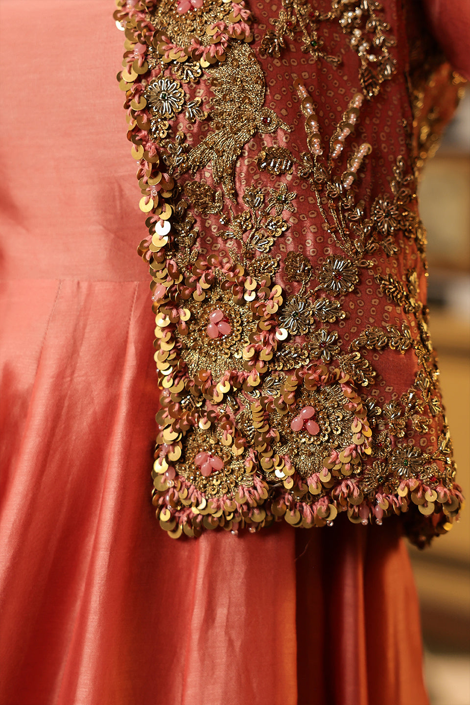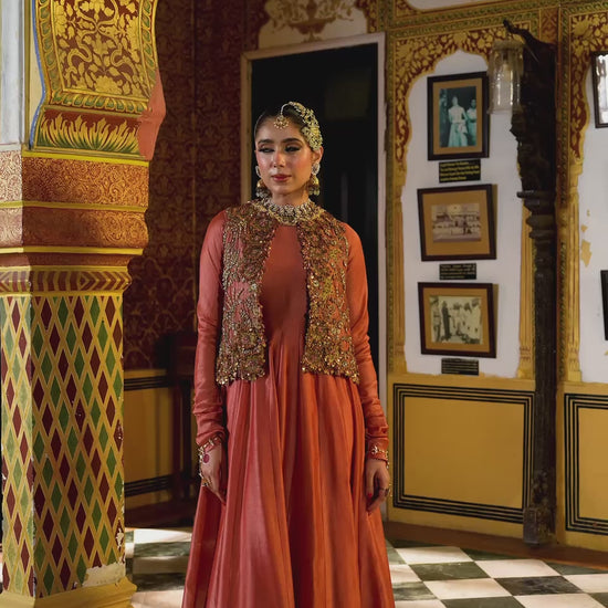 Ahista Rose Pink Jacket Kalidaar Set