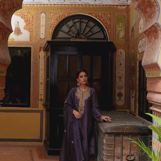 This 2 piece printed kurta set features embroidery on the neckline and sleeves of the kurta. It is paired with printed pants. Optional embroidered dupatta available on request.