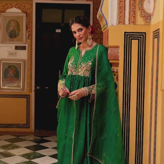 Ahista Green Mayur Applique Frockstyle Kurta Set