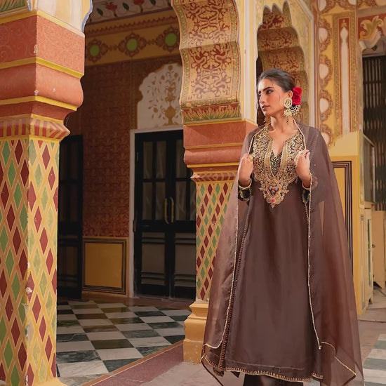 Ahista Brown Pakhi Yoke Pheran Long Kurta Set