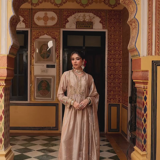 This 2 piece printed kurta set features embroidery on the neckline and sleeves of the kurta. It is paired with printed pants. Optional embroidered dupatta available on request.
