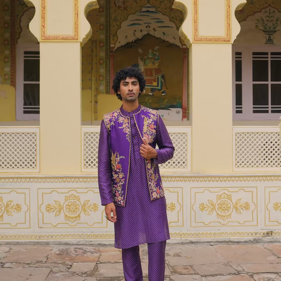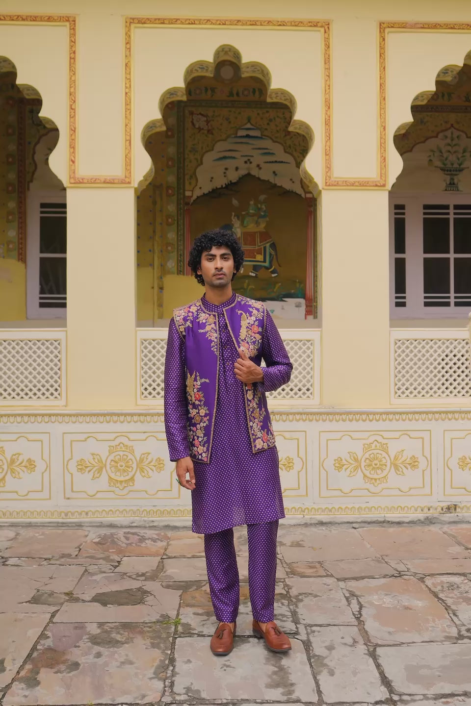 Ahista Purple Mayur Applique Bandi Kurta Set