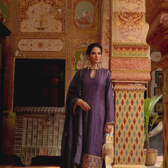 Ahista Purple Printed Mayur Applique Long Kurta Set